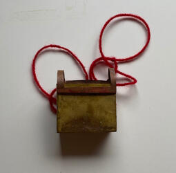 Latão, espelho e linha de lãO Alzheimer é representado através de um baú que contém um espelho dentro, um objeto que foca em ajudar as pessoas com a doença a relembrar de coisas banais mas nunca a recuperar a memória por completo visto que é irreversível.