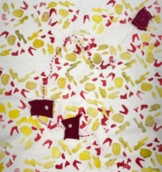Composição têxtil com tecelagem e estampariaUm mapa para que os animais que perderam o seu habitat e as suas condições de vida encontrassem o seu suposto habitat ideal. Este mapa mostra a quantidade de lugares expostos que tiveram de procurar até encontrarem o pressuposto "Ponto X".