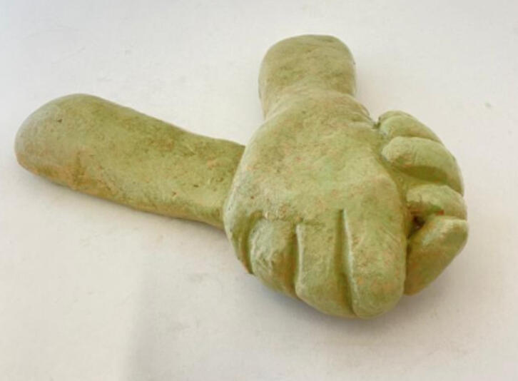 Escultura de barroRepresentação de duas mãos dadas de dois refugiados que não conseguiram sair do seu país perante a guerra.