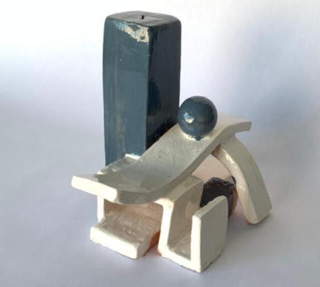 Escultura em terracota e vidragem com pigmentação azul e brancaPeça de cerâmica que reflete o conceito das obras “On peut” e “On peut encore”, de Ana Jotta, através de uma expressão plástica abstrata e textura marcante.