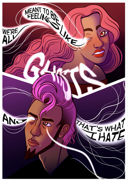 Ilustração digital A3Ghosts, através da ilustração apresentada, conta a história de uma jovem que vê os espíritos dos mortos e descobre que o mundo em que vivemos não é como a maioria dos seres humanos o vê.