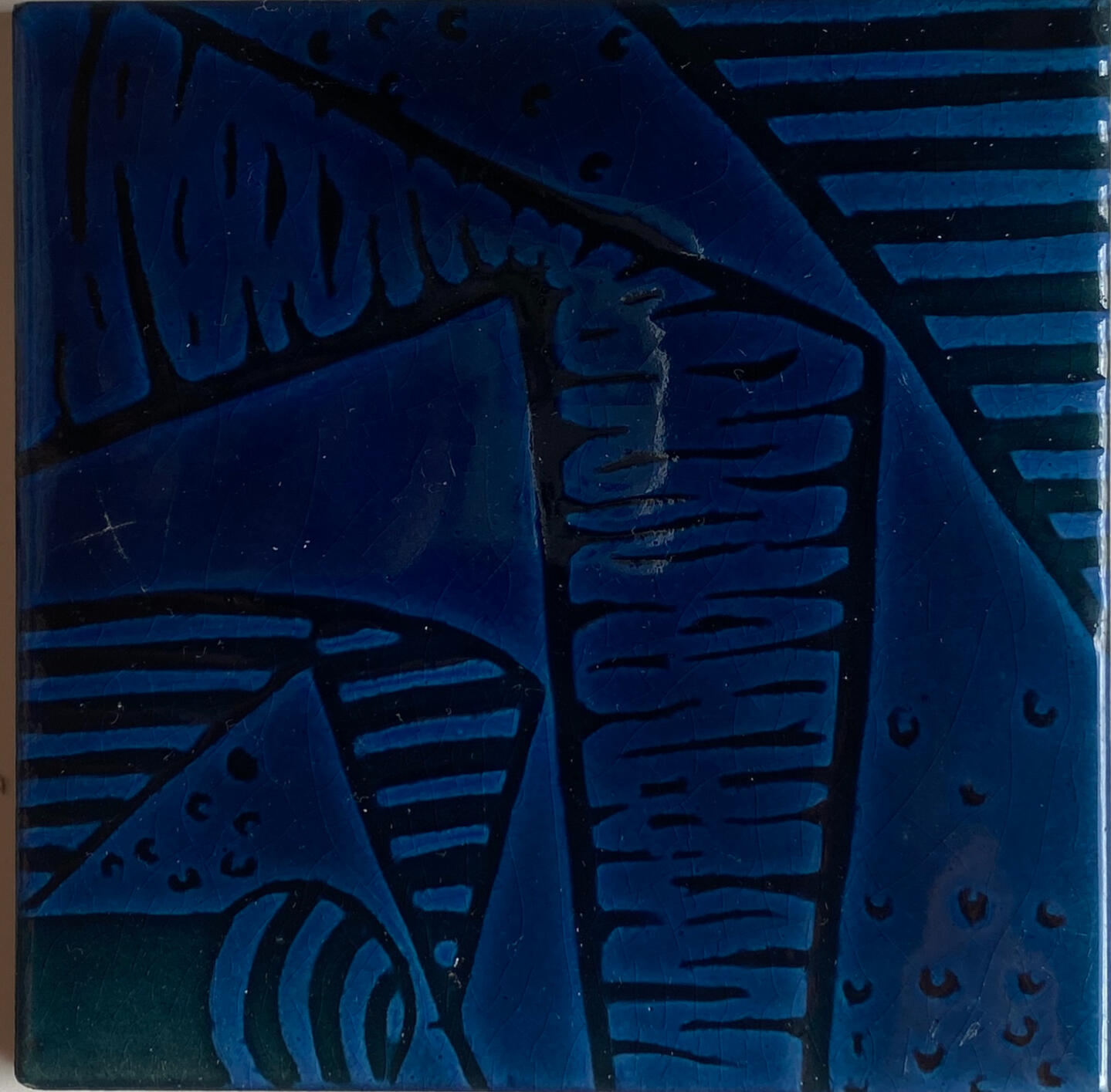 Azulejo com vidragem azulPeça de cerâmica pertencente a um projeto de 10° ano.